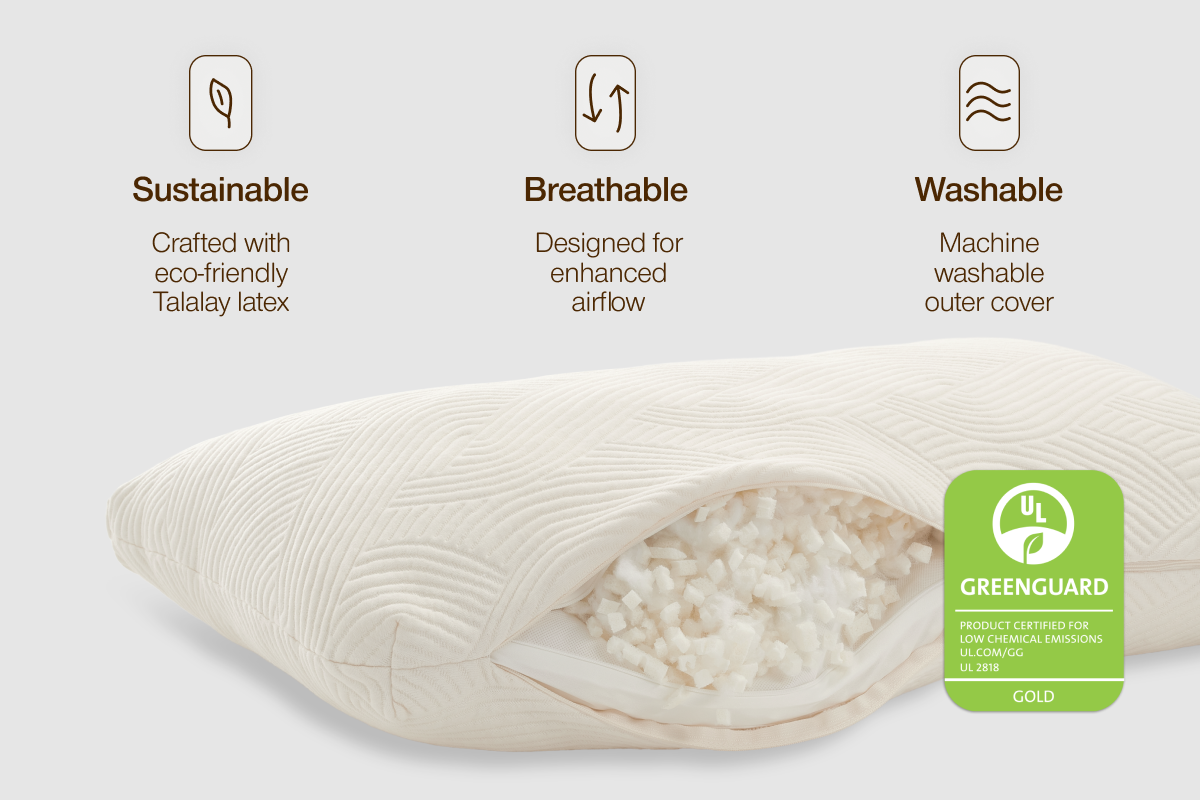 Sustainable and durable, Talalay latex undergoes an eco-friendly proprietary 8-step process, while the cross-cut design offers support and breathability.